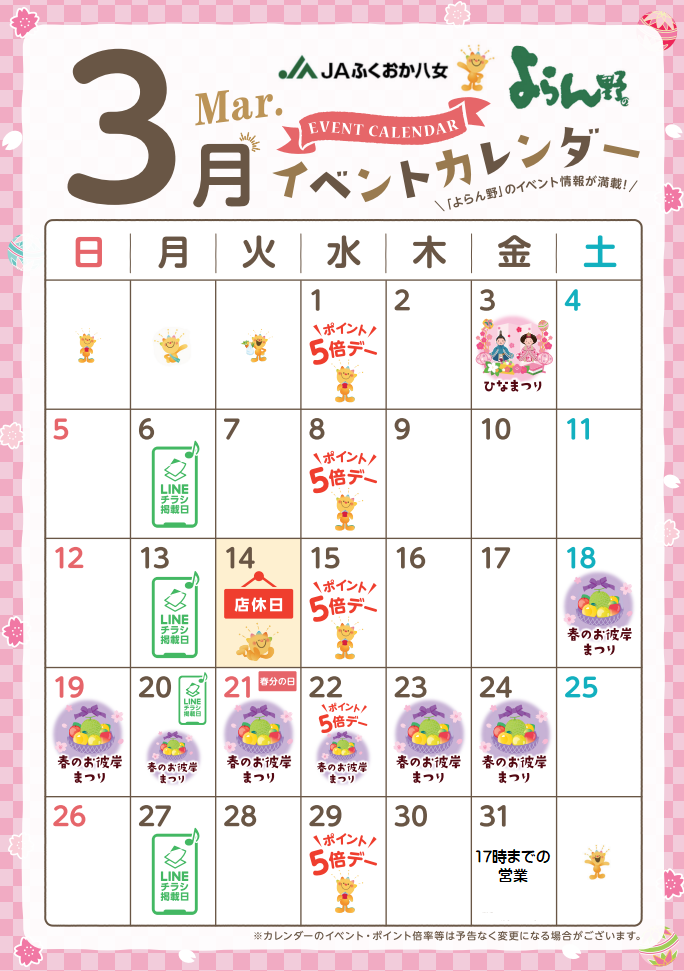 - よらん野 11月イベントカレンダー