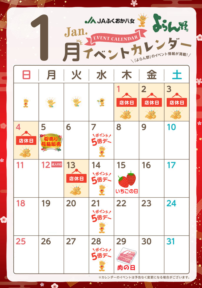 - よらん野 1月イベントカレンダー