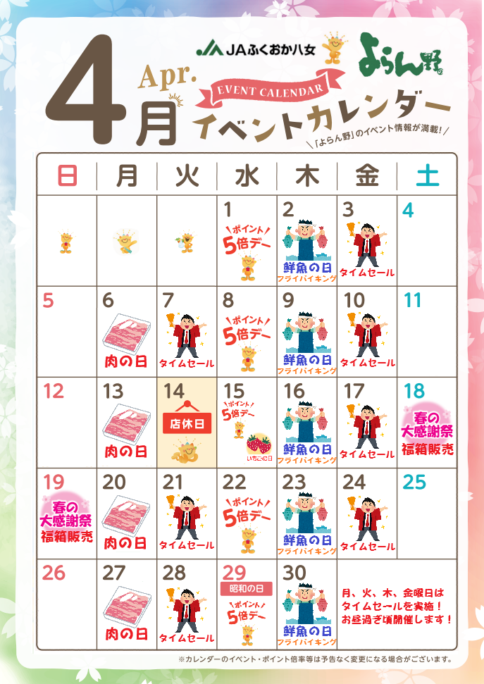 - よらん野 3月イベントカレンダー
