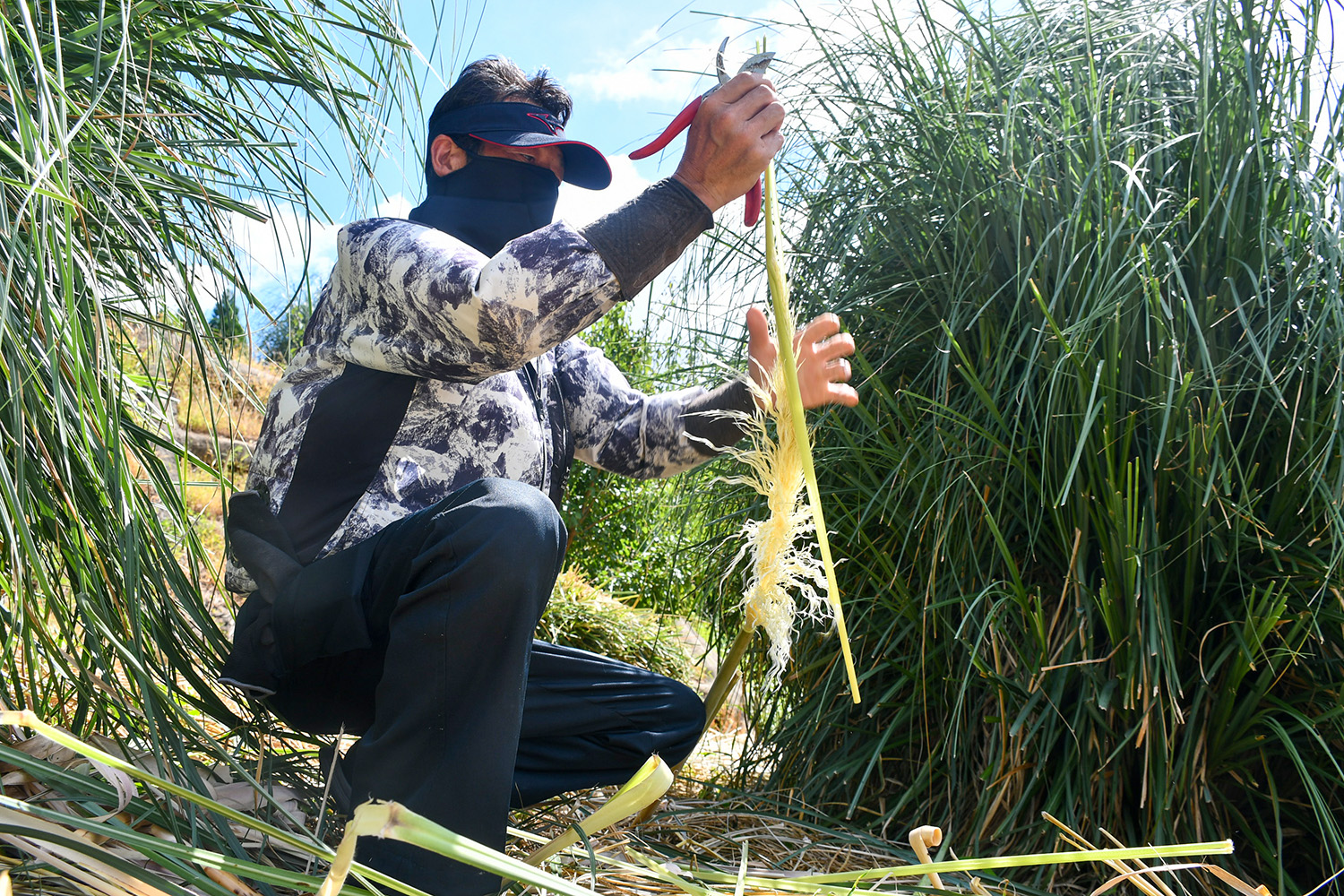 同研究会では約10年前からパンパスグラスの栽培を開始。今年は12人が栽培します。一度定植すると約20年は収穫が可能。管理作業が少なく栽培が容易なことから、夏場の収入源として生産者は増加傾向にあります。