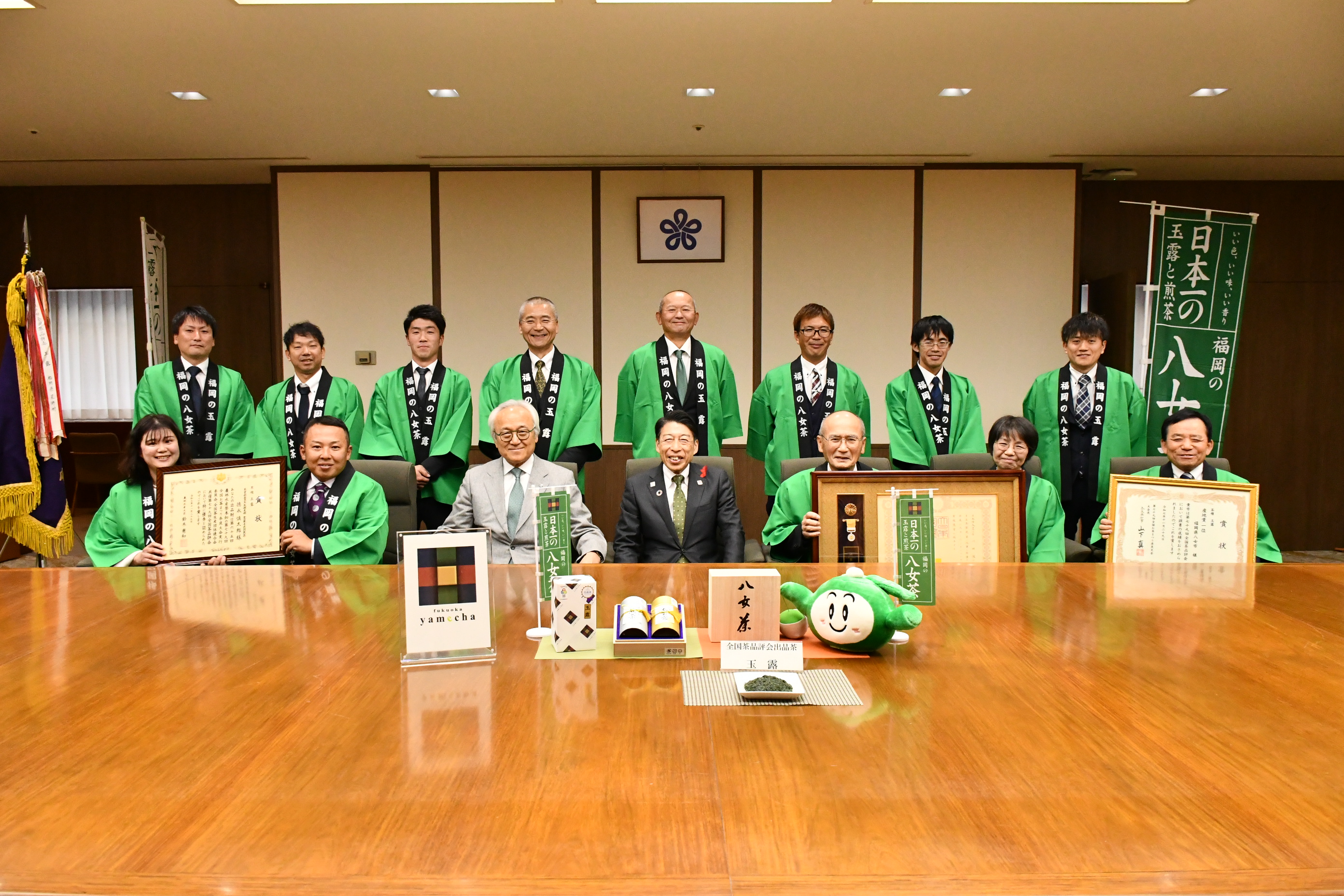 奈良県で開催された「第79回全国茶品評会」玉露の部において、八女市黒木町の茶生産者・徳永慎太郎さんが最高位となる農林水産大臣賞を受賞しました。福岡県内で同賞を受賞するのは最年少です。また、同部門では八女市が25年連続で産地賞を受賞しました。
